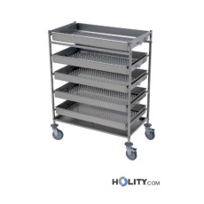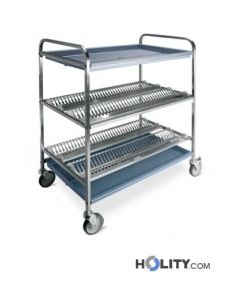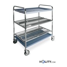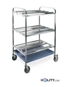Abtropfwagen für Teller mit Tropfschale. Material des Gestells: Edelstahl AISI 304. Abmessungen: B.87 x T. 62 x H.121 cm.