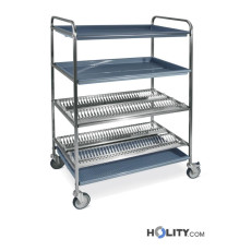 Professioneller 4-stufiger Wagen zum Abtropfen von Teller und Gläsern. 1 Abtropffläche für Teller. 3 Abtropfflächen für Gläaser. Breite: 87 cm.