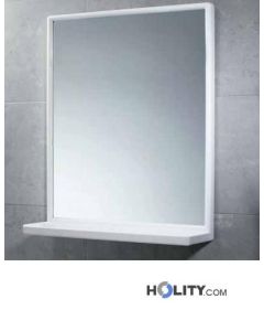 Spiegel für öffentliche Toiletten mit weißem ABS-Rahmen und Halterung aus rostfreiem Stahl. Abmessungen: H.390 x B.540 x T.75 mm.