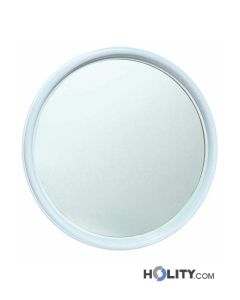 Ovaler Spiegel mit weißem Rahmen aus Kunststoff, Durchmesser 50 cm. Ideal für die Badezimmer-Ausstattung von Hotelzimmern