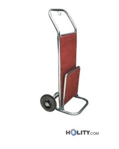 Zweirädriger Kofferwagen für Hotels. Ausgestattet mit klappbarem Holzboden und mit Teppichbezug