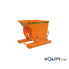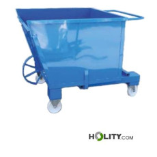 Kippbare Behälter für die Materialentsorgung. Abmessung: 150x106 x H. 115 cm. Höhe des Behälters: 80 cm. Fassungsvermögen: 1700 kg. Hergestellt aus lackiertem Kohlenstoffstahl.