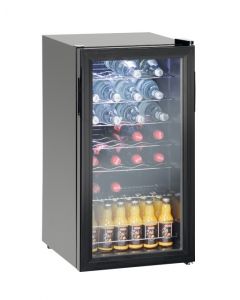 Kühlvitrine für Getränke. Fassungsvermögen: 115 l. Abmessungen: B.54 x T.53,9 x H.84,7 cm.