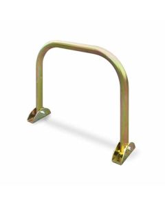 Parkplatzbügel aus galvanisch verzinktem Stahl mit europäischem Profilzylinderschloss (verschiedene Schlüssel). TÜV-zertifiziertes Produkt. Abmessungen: L.730xh.500 mm.