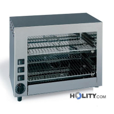 Professioneller Toaster mit Quarz-Heizelementen. Leistung 2800 W. Einstellbarer Grill auf 3 Ebenen. Abmessungen: H.400 x T:500 x L.680 mm.