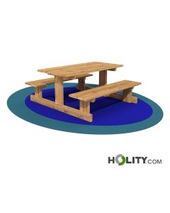 Bank-Tisch Kombination für Kinderspielplatz. Material: Holz. Abmessungen: L150 x T120 x H55 cm.