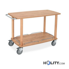Gueridonwagen für Speisesaal aus massivem Buchenholz mit zwei Ablagen und 4 rotierenden Rädern. Abmessungen: L.700 x T.450 x H.800 mm.