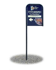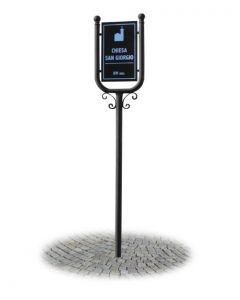 Tafel für dekorierte Stadtmöbel. Aushangfläche: L.40 x H.25 cm. Gesamthöhe: 300 cm. Hergestellt in Italien.