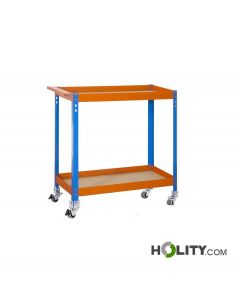 Metallwagen mit 2 Etagen und Rädern für den einfachen Transport von Werkzeugen. Tragfähigkeit: 150 kg. Abmessungen: B 90 x T 40 x H 103 cm. .